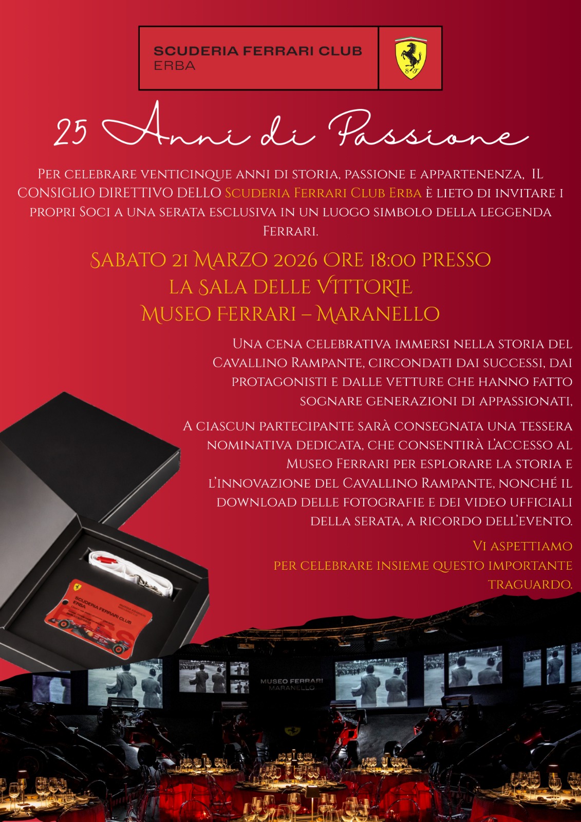 21 Marzo | Festeggiamenti per il 25° anno del club presso la Sala delle Vittorie del Museo Ferrari di Maranello (MO) Clicca qui per la locandina. | ||||